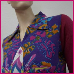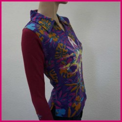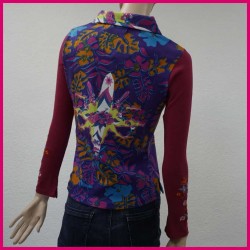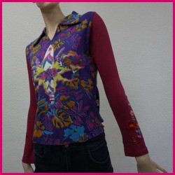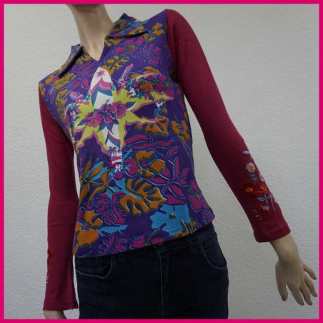Preciosa camisa de mujer hippy con cuello y estampado floral tribal.