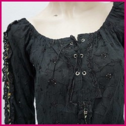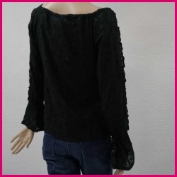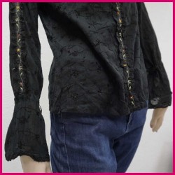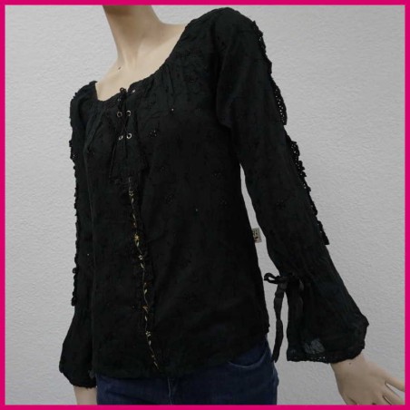 Camiseta con motivos bordados y mangas acabadas en corte romántico y ligeramente acampanada.