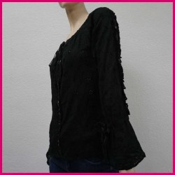Con estampado bordado y ribete frontal y en las mangas laterales.