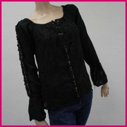 Camiseta de escote cerrado en cordón cruzado.