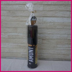 El portalápices es de metal con tapa de plástico y escudo de goma.
